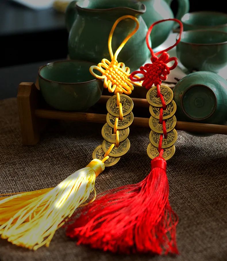 可在汽车里悬挂一串五帝钱,既可以装饰又能保平安。