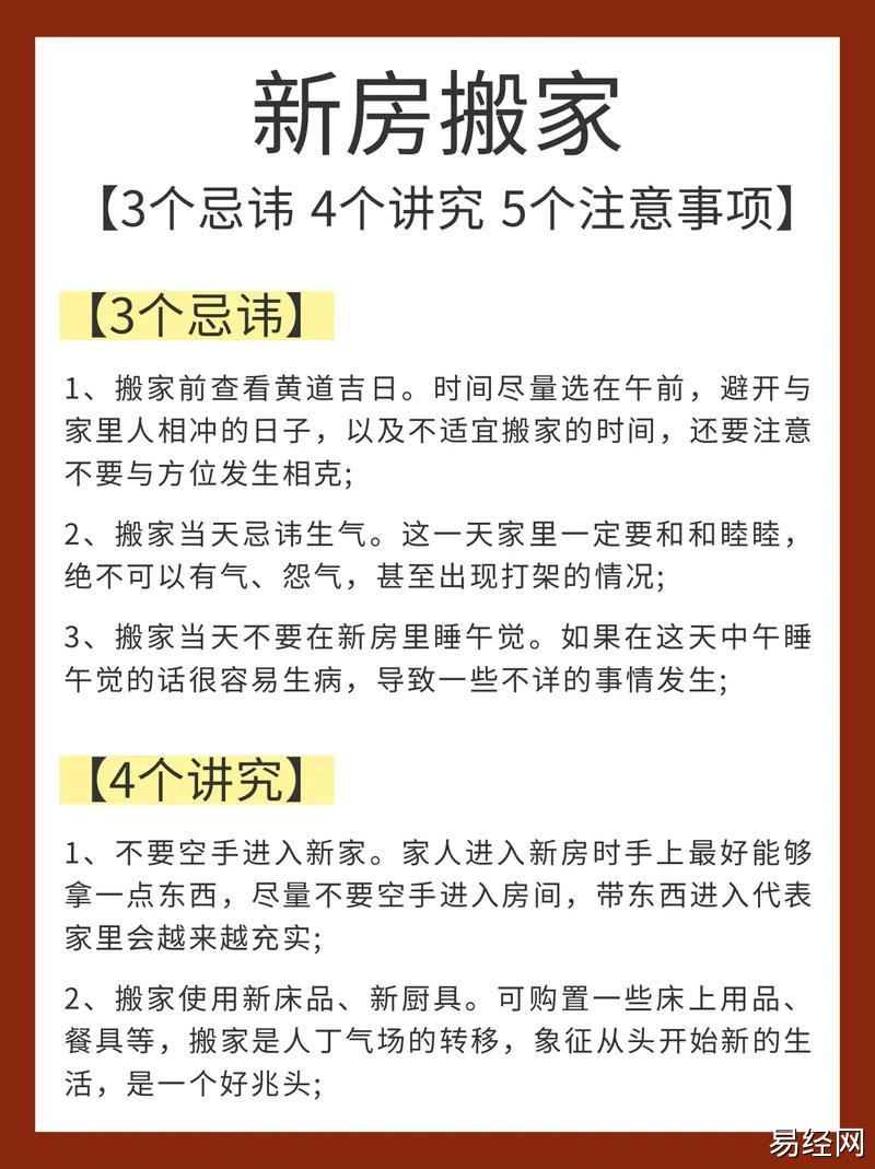 易经网推荐2025推荐搬家后风水禁忌有哪些禁忌 属猴的人搬家禁忌,最新易经风水,下面是详细内容: 搬家是人生中的一件大事,人们往往希望在新居中 обрести好运和福气。除了实用考虑外,风水禁忌也在搬...