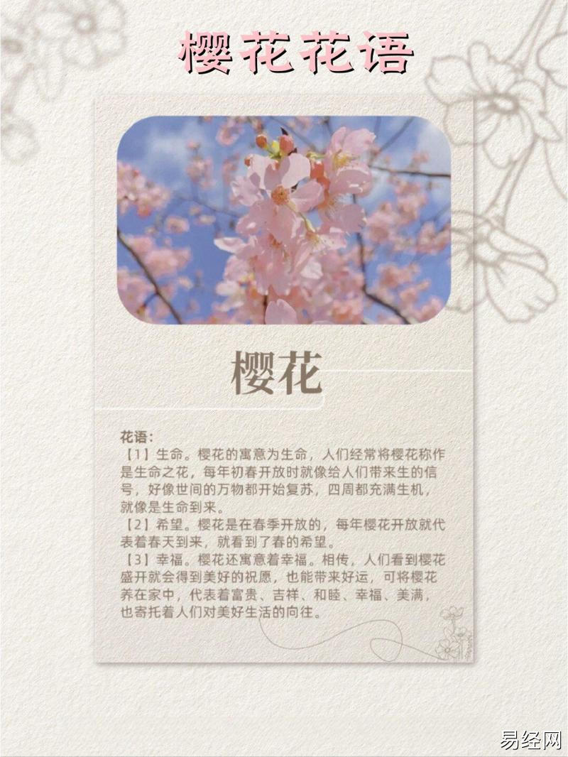 易经网推荐2025最新樱花是什么生肖 樱花是指什么动物是什么意思?,最新生肖运势,下面是详细内容: 樱花,作为春天的象征,以其短暂而绚丽的花期,吸引着无数人的目光。樱花不仅仅是自然界的美丽存在,...