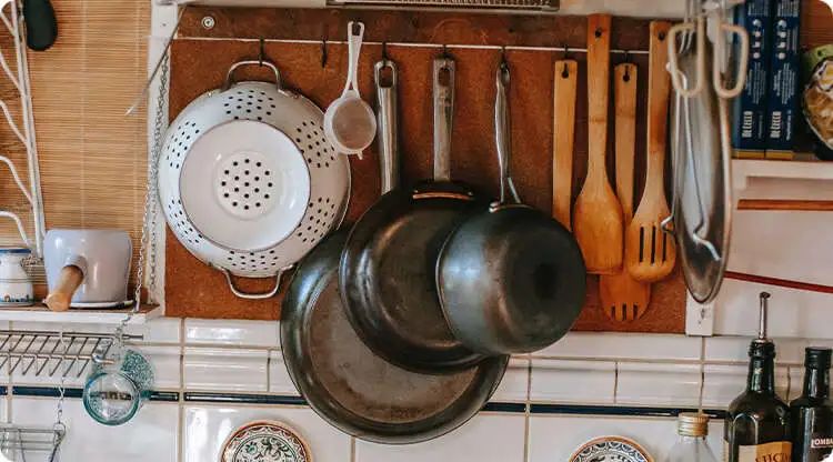 想要做出美味的食物,锅铲是必备工具,一般情况下蒸锅、炒锅、平底锅等大型的炊具,建议放在水槽下或者吊柜内,这样不仅节省了台面的空间,而且还会让厨房看起来整洁有序,让人更有食欲。