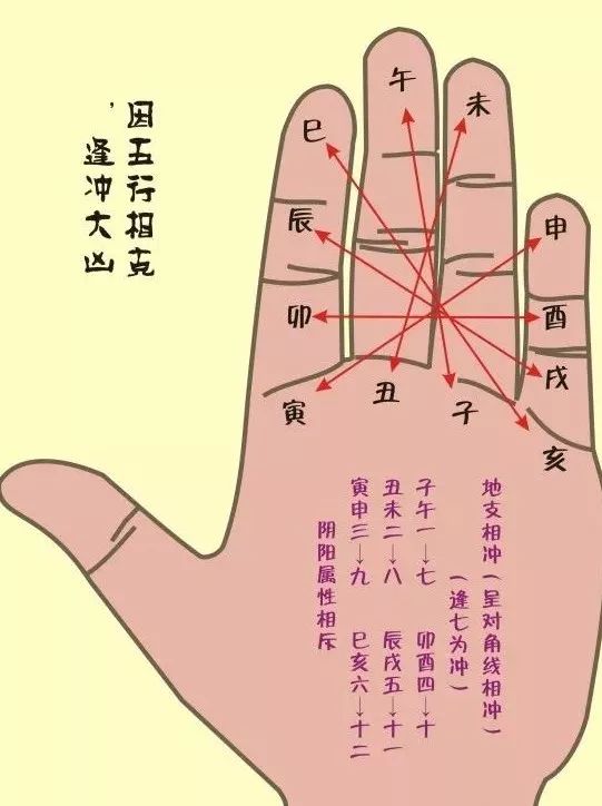 地支六冲掌诀图示