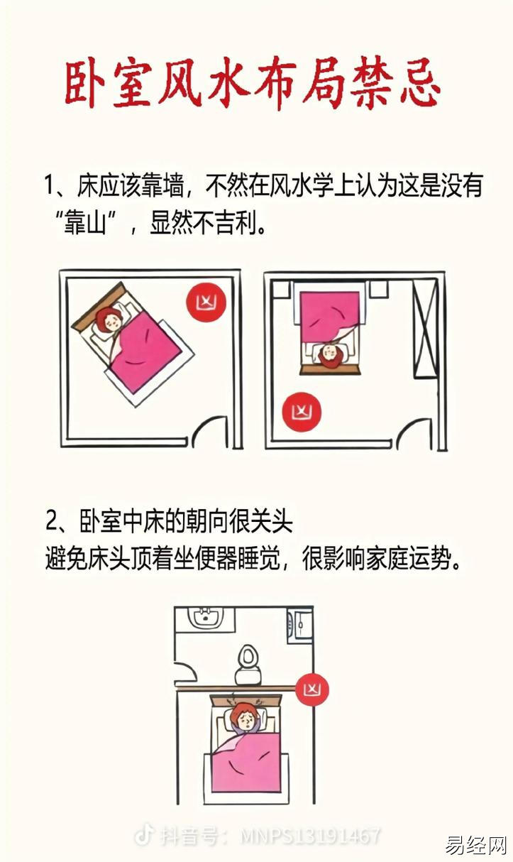 2025推荐卧室床摆放方位风水 卧室床的摆放方向最新,最新易经风水由易经网整理发布!,2025推荐卧室床摆放方位风水,卧室床的摆放方向最新,最新易经风水要求。根据易经风水,床应避免正对门、厕所或镜子,宜靠墙放置,以增强稳定感。最佳方向为坐北朝南或坐东朝西,利于气场平衡。床头宜有靠,不宜悬空。避免床下堆放杂物,保持通风畅通。合理布局有助于提升睡眠质量与运势。