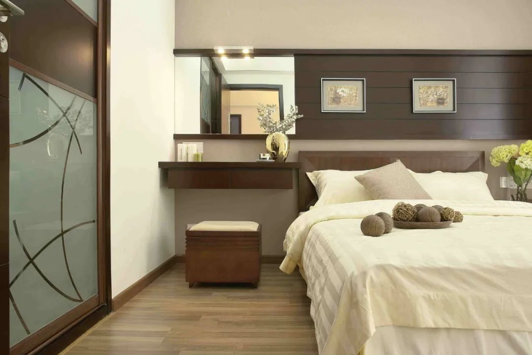 很多人为了让房子的空间显得更大一点,就会选择在卧室的床头上方,嵌一块大面的镜子,从而拉大人的视觉空间效果。