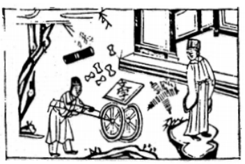 此卦彭越戰項王絶糧時,卜得之,遂能承恩 改革也。 圖中: 一人把柿全,一人把柿不全,一兔虎, 官人推車,車上一印,在大路上。 豹變爲虎之課 改舊從新之象 井之為用,在甘潔寒洌,如中有穢物,任其存之必敗...