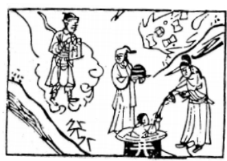 此卦秦君卜得之,乃知得九鼎以象九州也。 圖中: 雲中月現,鵲南飛,一子裹席帽,一 人執刀,貴人端坐無畏,一鼠。 調和鼎鼐之課 去故取新之象 能使物分隔,為鼎,故鼎之用在能革物,能使水火不同之物相合,...