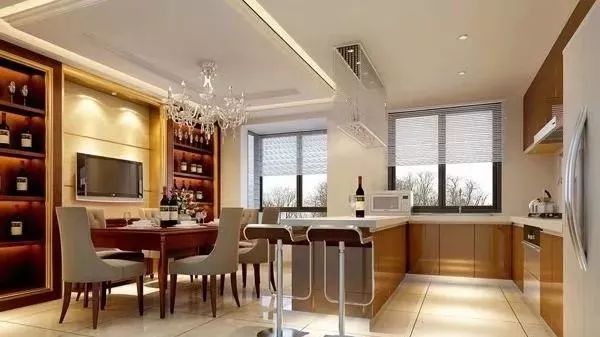 在风水上把厨房定义为财,把客厅定义为官,要财官相对财官相生,财来生官,官来护财,也就说这两个体系必须要独立,不能够融为一体。