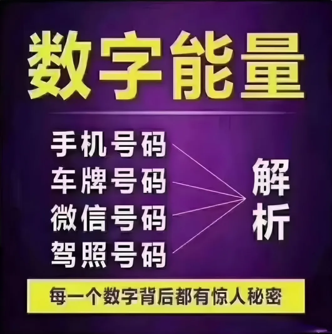 手机号码、身份证号、银行卡号、车牌号、门牌号、QQ号、微信号等等,每个人的生活都跟数字息息相关,实际上是每天和数字能量磁场发生着关系,数字承载着信息,也承载着能量。每个数字有自己的能量与磁场,不同数字互相组合会产生不同的能量,好的数字组合会产生正向影响,不好的数字组合在一起,就会带来负面的影响。 而这种强大的数字能量场,与人的能量场会高度震荡吻合,从而影响或者改变人原来的能量磁场。 日常生活中使用越是频繁的数字,对你的影响越大,比如手机号码,可以在很大程度上反映出个人财运、婚姻、性格、事业、健康等多方面的情况。 数理,就是易理应用的一部分,中华文化是天人合一的文化,人与万事万物是相对应的,客观存在的就是合理的。 人用磁场来划分,一个是先天磁场,一个是后天磁场。 先天磁场:代表固定无法改变的磁场,包括父母、生辰八字、出生地、大运、流年等等。 后天磁场:代表流动,可以选择改变的,通常是可以趋吉避凶的磁场;包括:风水(外环境与内环境)、姓名、吉祥物、手机号码、从事的行业等可变磁场。 先天磁场基本构成了我们一生中大的格局。后天磁场可以弥补平衡先天磁场不平衡的地方。 如同批八字中讲的用神有力即为好命。后天磁场用好了,可以帮我们趋吉避凶,起到助运改运转运的作用。 风水学的峦头学说到一草一木皆为風水,正是说明所有东西都是有意向、五行和磁场的。但皆要配合理气才能使風水生效。也就是说要配合摆放对了位置。 名字配合你的八字是独一无二的磁场组合,对你的影响是非常大的。而科技发展让我们几乎每个人和家庭都使用上了对自己独一无二的电话数字磁场,数字也同样是有意向的,只是你是否懂得解读罢了。 数字磁场对你的影响非常之大,甚至在某些规律上是决定性的影响。因为电话号码的使用频率甚至大过名字被叫的频率,尤其是在电话接通声音产生的震动更带动能量磁场的作用,对使用者的影响是非常大的。 在用手机号码做预测的经验中,发现的规律是,当你先天磁场走好运,但手机号码拿错了的时候,你绝对没那么好运。但如果先天磁场走不好的运势,拿到的是好运或者互补的手机号码,那你一定没有那么差的运势。 所以从手机号码可以看出你的婚姻、感情、事业、钱财、个人能力、投资、理财、行业、疾病、学业、意外、口角、血光、个性、工作、能不能留住钱财等等这些现象也就不验证解释了。 数字能量学可以带你探索数字背后的奥秘,运用对自己有帮助的数字组合,让自己的人生变得越来越好。 万物皆有能量,平时使用的号码也不例外,数字能量学通过解读数字承载的磁场信息,让我们能从一个人长期使用的号码(3年以上的磁场稳定,准确度高)可以分析出一个人的性格、感情、婚姻、事业、财运、健康等情况……反之,通过选配符合个人职业、需求、运势的号码也有助于我们调整性格、感情、婚姻、事业、婚姻、健康…… 数字无吉凶,一切看组合,以上是指大概率情况,一个好的手机号码要结合不同的行业,性别,年龄,自身所处的环境,身体状况,个人需求进行搭配组合。 随着数字化时代到来,数字不再单纯作为计算、显示、记录的工具,而是增加了身份识别功能,当数字有了身份意义,原本蕴含着古老力量的数字能量磁场,一步一步将你的人生引领进入你未知的领域。 数字能量学预测,不需要熟记用神,只要熟记数字即可完全使用,效果迅速,准确率高。可以随手起卦,不用装盘、解盘。相比日常常见预测方法来说,数字能量是一个高效、方便、快捷的预测方法。