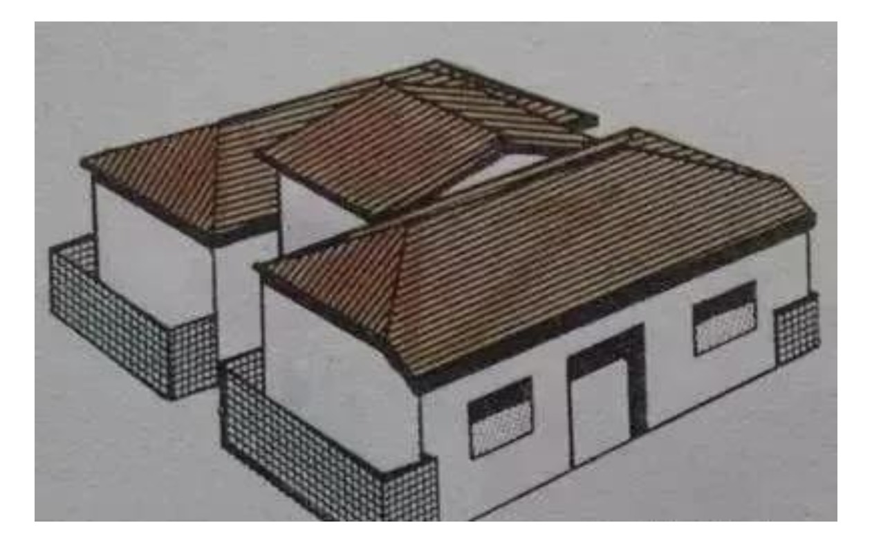 主屋与另一栋房子有连接的住宅,缺青龙边或白虎边,形成汉字中的亡字形状,最终会一败涂地。虽然类似三合院,但是它的特征是主屋分离,又与另一栋房屋互有联系,为凶形。