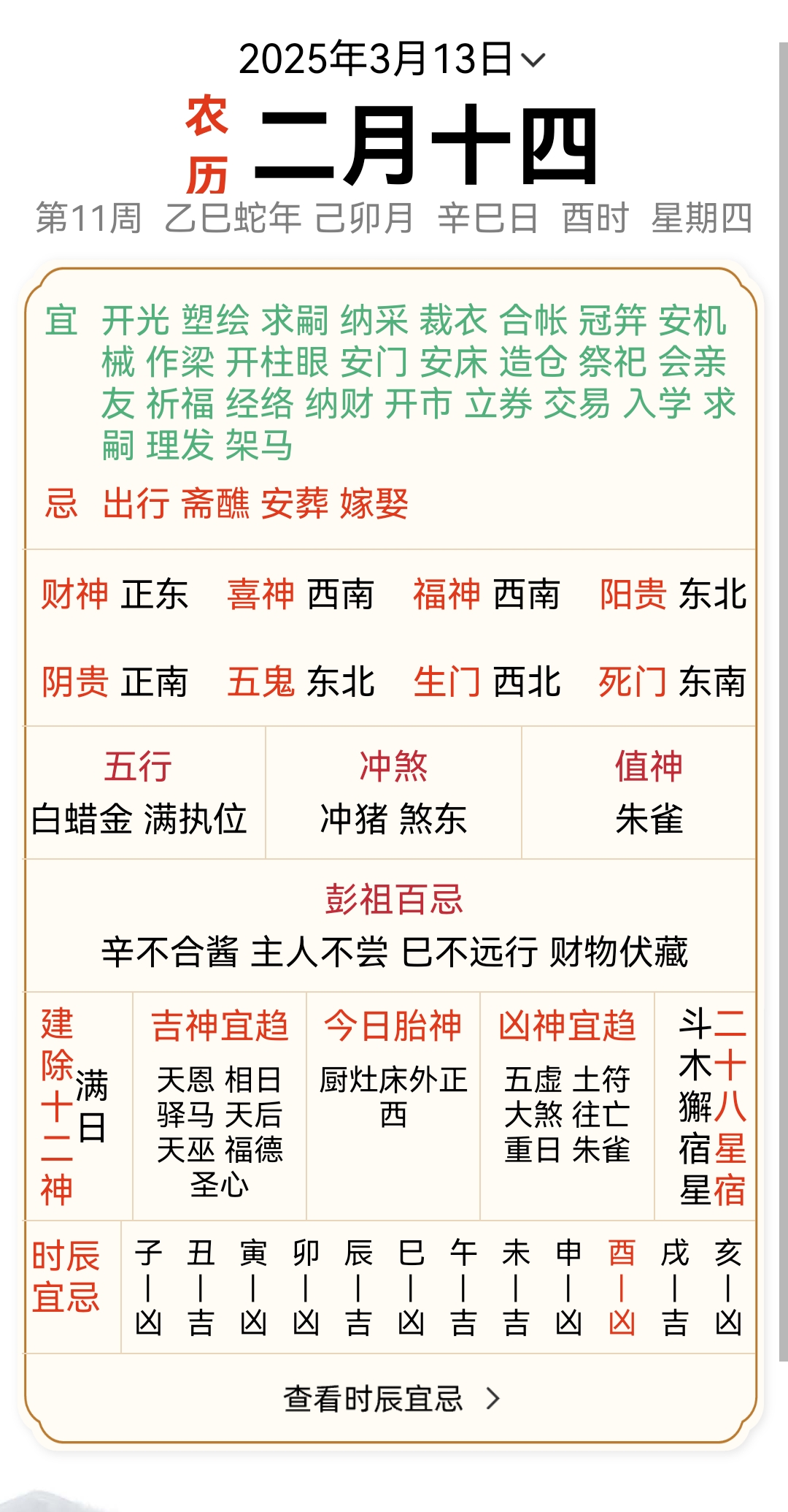 二月十四 辛巳日