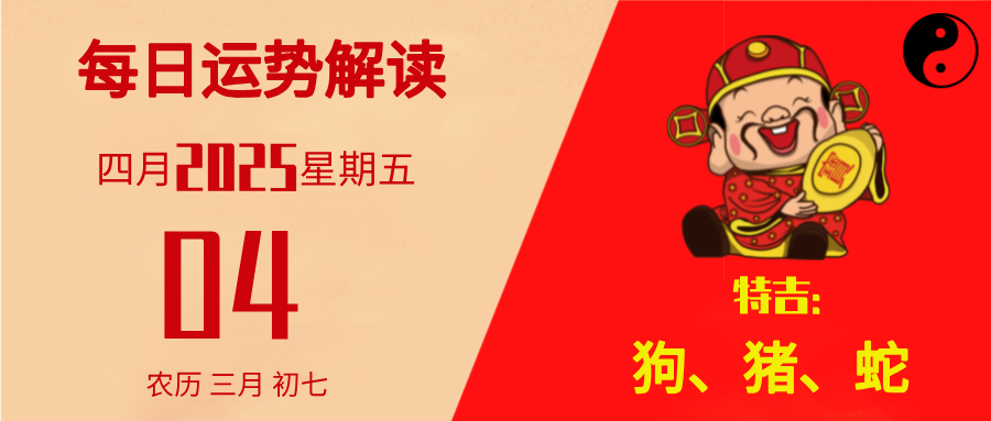 【运势播报】2025年04月04日 星期五,农历三月 初七(乙巳年 己卯月 癸卯日),法定节假日。