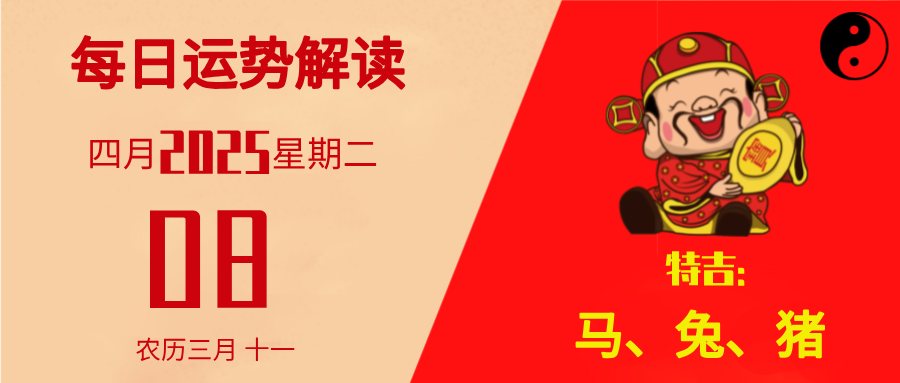 【运势播报】2025年4月8日 星期二,农历三月 十一(乙巳年庚辰月丁未日),法定工作日。