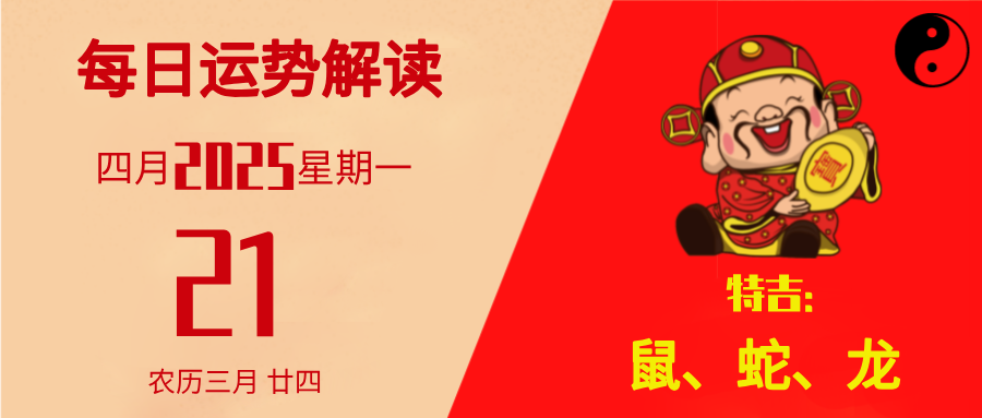 【运势播报】2025年04月21日 星期一,农历三月 廿四(乙巳年庚辰月庚申日),法定工作日。