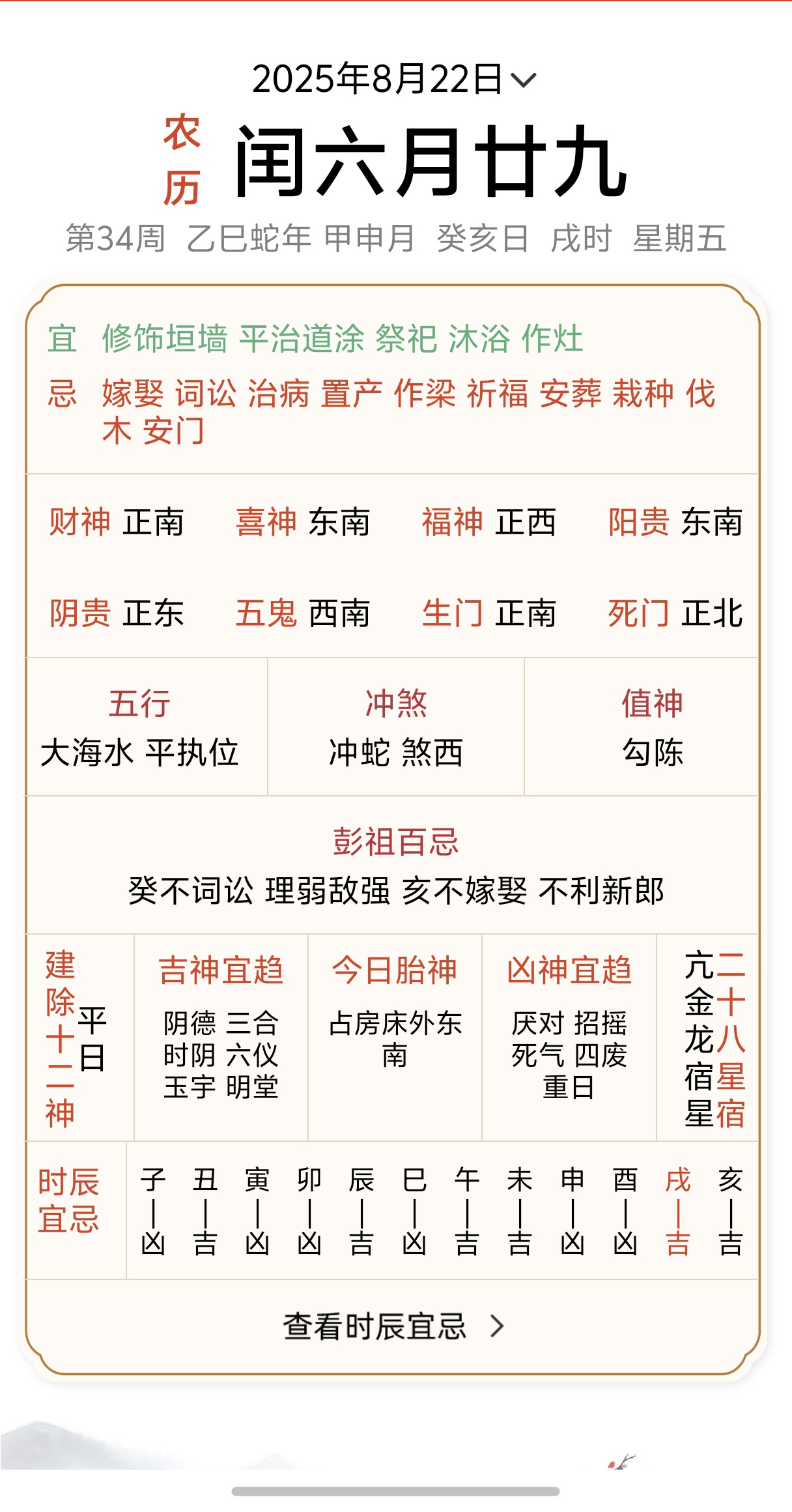 闰六月廿九 癸亥日