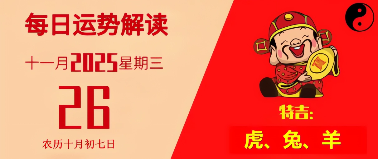 【运势播报】2025年11月26日,星期三,农历十月初七(乙巳年丁亥月己亥日),法定工作日。