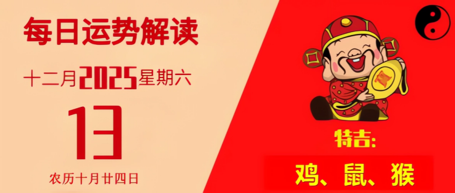 【运势播报】2025年12月13日 星期六,农历十月廿四日(乙巳年戊子月丙辰日),法定节假日 建星吉凶:定日