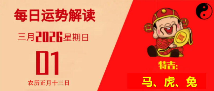 【运势播报】2026年3月1日 星期日,农历正月十三日(丙午年庚寅月甲戌日),法定节假日