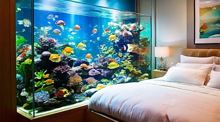 万不可将鱼缸和水景放进卧室内,一方面,容易加重卧室湿气,引发居住者关节疼痛和皮肤问题,造成身体损害。另一方面,水循环系统在运作过程中会产生噪音,在宁静的夜晚尤为突出,从而影响居住者的睡眠质量。