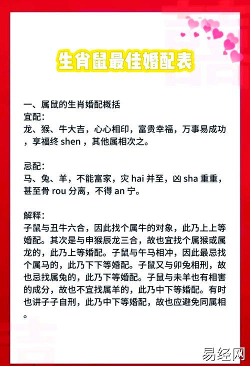 2025最新属马的婚姻和属鼠的相配吗 属鼠妈妈怎样教育属马孩子是什么意思?,最新生肖运势由易经网整理发布!,2025最新属马的婚姻和属鼠的相配吗?属鼠妈妈怎样教育属马孩子是什么意思?根据传统生肖配对,属马与属鼠在性格上互补,属马人热情开朗,属鼠人聪明细致,双方相处融洽。但需注意沟通方式,避免因性格差异产生矛盾。属鼠妈妈教育属马孩子时,应注重引导其情绪管理,鼓励其发挥创造力,同时培养责任感。2025年生肖运势显示,属马人需把握机遇,属鼠人宜稳中求进。家庭和谐需双方共同努力,理解与包容是关键。