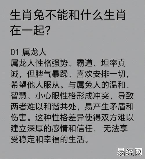 2025最新属兔跟属龙的婚姻如何 妈妈属兔闺女属龙好吗是什么意思?,最新生肖运势由易经网整理发布!,2025最新属兔跟属龙的婚姻如何?妈妈属兔,闺女属龙好吗?是什么意思?在传统生肖文化中,属相之间存在相合与相冲的说法。属兔和属龙在十二生肖中属于六合之一,象征着良好的缘分和默契。因此,属兔和属龙的人结婚,通常被认为是吉利的组合,双方容易互相理解、支持,感情稳定。而“妈妈属兔,闺女属龙”则是一种家庭成员之间的属相搭配,从命理角度看,这种组合也被认为是和谐的,有助于家庭和睦。2025年,属兔和属龙的人在感情方面可能会迎来新的机遇,尤其是属龙的人需注意情绪管理,属兔的人则应更加主动沟通,以维持关系的稳定。整体来看,这对组合在2025年的运势较为积极,适合加深感情或步入婚姻。