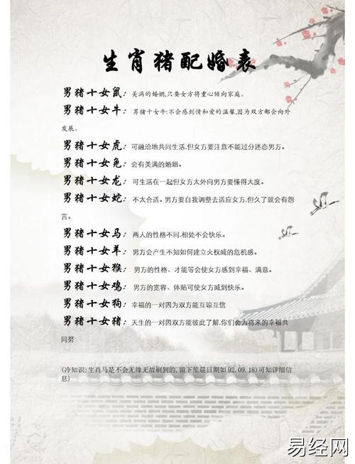 易经网推荐2025最新属猪的人感情故事简短介绍 属猪女人的经历感悟是什么意思?,最新生肖运势,下面是详细内容: 属猪的人,通常被认为是温和、诚实和善良的代表。他们在感情上同样展现出深厚的情感和...
