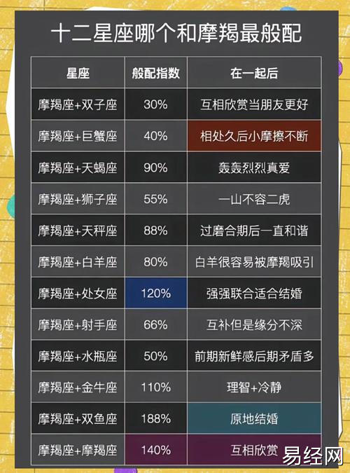 易经网推荐2025最新摩羯座爱情速配星座是什么 摩羯最不该放弃的星座是什么意思?,最新生肖运势,下面是详细内容: 摩羯座在寻找爱情时,通常会选择那些能够理解和支持他们务实、稳重性格的伴侣。以下...