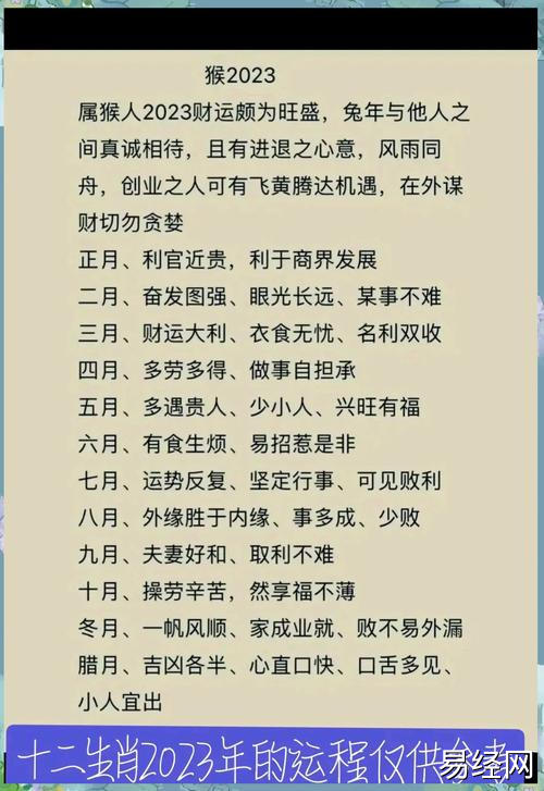 2025最新属猴的今日运势查询财运 属猴的今日运势大全是什么意思?,最新生肖运势由易经网整理发布!,2025最新属猴的今日运势查询财运 属猴的今日运势大全是什么意思?2025年属猴的人今日运势如何?根据传统生肖运势分析,属猴的人在今天整体运势较为平稳,适合处理日常事务。财运方面,有小财进账的机会,但不宜大额投资或消费。工作上需注意细节,避免因粗心导致失误。感情方面,单身者有机会遇到心仪对象,已婚者应多与伴侣沟通。健康方面,保持良好作息,适当运动有助于提升精神状态。今日运势虽无特别亮点,但稳中求进是最佳选择。