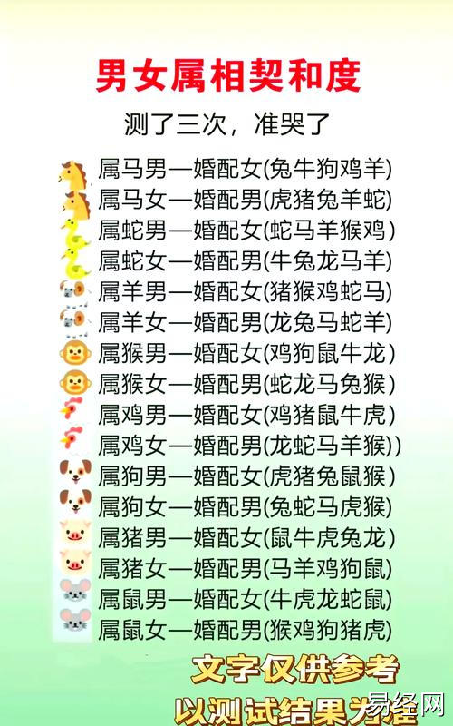 2025最新属猪女和摩羯男配对指数 属猪摩羯男属兔摩羯女是什么意思?,最新生肖运势由易经网整理发布!,2025最新属猪女和摩羯男配对指数 属猪摩羯男属兔摩羯女是什么意思?2025年生肖运势中,属猪女性与摩羯男性配对指数较高,双方性格稳定、务实,能相互扶持。属猪女通常善良细腻,摩羯男则沉稳可靠,彼此互补。而“属猪摩羯男属兔摩羯女”是指男性属猪且属摩羯,女性属兔且属摩羯,这种组合在生肖与星座结合下,需注意沟通方式,以维持感情和谐。