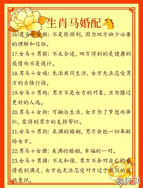 2025最新属马女人婚姻和命运如何 1966年属马男的婚姻怎样是什么意思?,最新生肖运势由易经网整理发布!,2025最新属马女人婚姻和命运如何 1966年属马男的婚姻怎样是什么意思?2025年属马女性在感情方面将迎来新的机遇,单身者有机会遇到心仪对象,已婚者则需多沟通,避免误会。1966年属马男性在婚姻中需注重责任与包容,事业运上升,但感情需用心经营。整体运势平稳,需把握时机,提升自我。