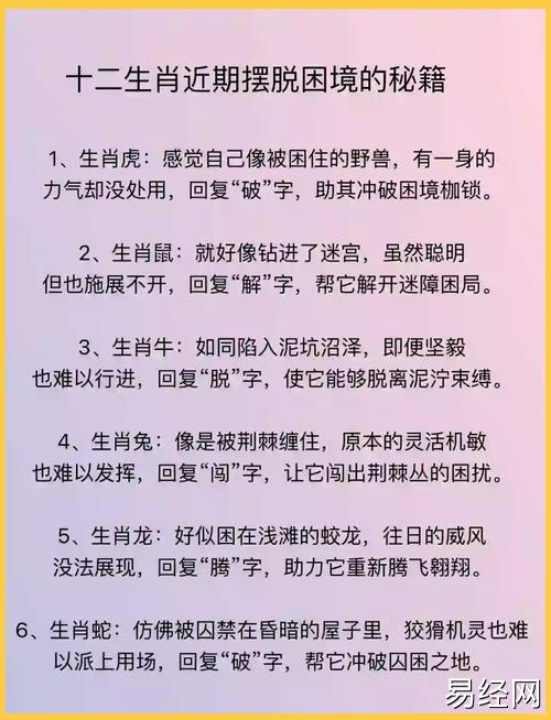 2025最新最不怕人的是什么生肖 最讨厌婆婆的三大生肖是什么意思?,最新生肖运势由易经网整理发布!,2025最新最不怕人的是什么生肖 最讨厌婆婆的三大生肖是什么意思?2025年生肖运势备受关注,其中“最不怕人”的生肖往往性格开朗、自信满满,不惧挑战。而“最讨厌婆婆”的三大生肖则可能因个性强势或家庭观念不同,与长辈相处时容易产生摩擦。这些说法多源于民间传统,结合生肖性格特点推测未来运势。具体而言,某些生肖因性格独立、直言不讳,可能在人际交往中显得较为直接,甚至被认为“不怕人”。而另一些生肖则可能因固执己见,在家庭关系中与长辈意见不合,引发矛盾。尽管这些说法缺乏科学依据,但作为文化习俗,仍有一定影响力。了解生肖运势可帮助人们调整心态,提升人际关系和谐度。