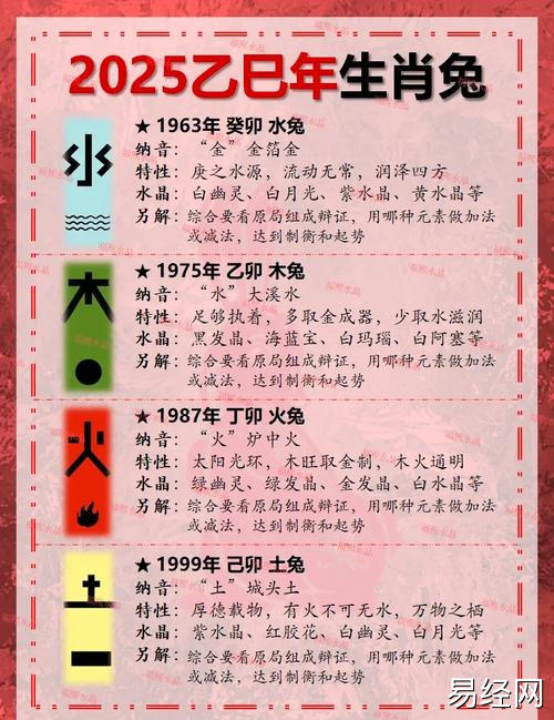2025最新属兔几月做事业财运好点 2011年属兔几月旺父母是什么意思?,最新生肖运势由易经网整理发布!,2025最新属兔几月做事业财运好点,是许多属兔人关注的话题。根据生肖运势分析,2025年属兔人整体运势较为平稳,但不同月份的事业发展和财运有所不同。一般来说,农历三月、五月和九月是属兔人事业运较旺的月份,适合开展新项目或做出重要决策。而农历七月和十二月则需谨慎行事,避免不必要的风险。此外,2011年属兔的人,几月旺父母,是指在某些月份中,与父母的关系会更加和谐,家庭运势也会增强。这通常与个人命理中的五行相生相克有关,建议属兔人在这些月份多关心家人,增进亲情。整体来看,2025年属兔人需把握好时机,合理规划,才能在事业和家庭中取得更好的发展。