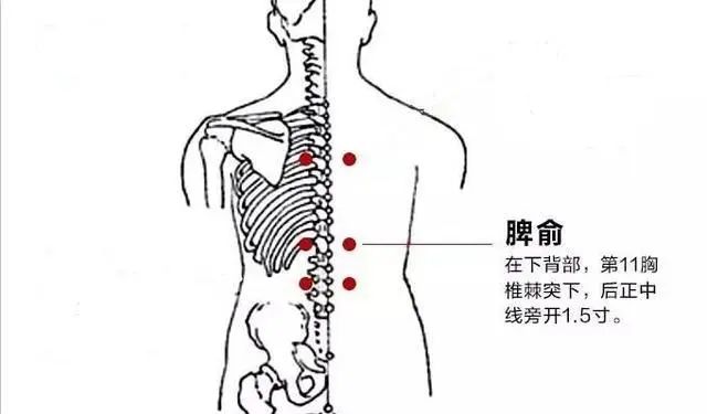 归经:足太阳膀胱经 位置:人体的背部,第11胸椎棘突下,左右旁开两指宽处 作用:外散脾脏湿热之气