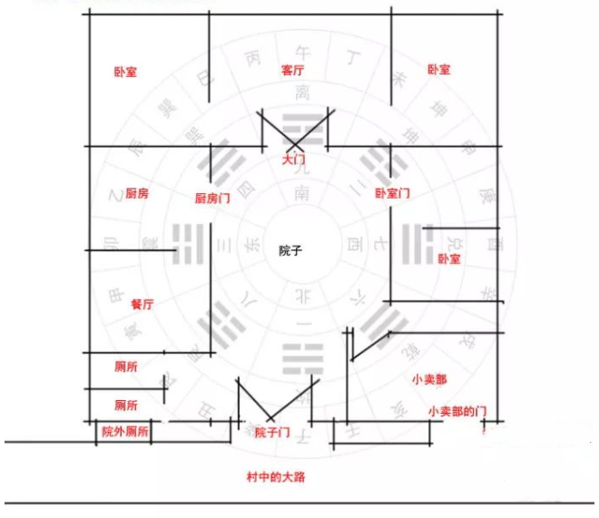 六煞落在乾位,乾方高大则六煞更旺。六煞受乾金生反旺,水不要生,生则混流泛滥。与之对应的乾宫老翁,企业业领导人,老年男人突出表现为作风不正。恐老翁晚节不保,年老少心。老年人想梅开二度,有花花之心,招来家丑。单位领导则多为领导在作风上出现问题。 乾门坎高大,六煞主事。六煞水落坎宫,水水比和,又得乾门金生,水太旺,水旺则泛滥,泛滥则混流。火燥向上,水就下,往下流,则坎住中男,排行老二或中年男子,中男比较漂荡,流荡无依,虽有生,但其心态往下不向上。 大的企业,坎位非常突出,坎位显的非常长,有时房也很高,则六煞更加得势,首先为口舌是非,领导有经济问题,最后导致牢狱之灾。年轻孩子不思进取,贪玩不知好好学习。 例:河北省石油公司就是这种格局。 乾门坎宫,风水不好,女领导大概是被抓了两个,因为经济上的事。因为六煞太高大。主要经理办公桌放六煞,其地位还在动摇。 调理:加高艮宫即可。 此地极凶,手下难管。此地已经伤几条人命。手下98年制造假现场,广东当时有文,赌博拒捕,可毙。他们为奖金,制造假象。枪毙七个赌博的人。普宁市已奖励了这帮人,但被害家属上告此事,接连上告,此事引起民愤,全乡人捐钱打官司。 状纸发到人大代表之手,后派出所所长被枪毙。他们杀七个人,所长毙,一年内死了8个人。目前仍有执法犯法。 调理:纠正凶猛,闭兑开震门,但不能长久,提职后要赶快调走。 乙: 风水为古法,一般一个宅院一个门,有的农村家庭,为了其他用途,院子开了两个门,常常招祸。有人胆敢以身试法,否定风水的作用,胆敢久住,常常以生命为代价,实为可惜。 院子平面布局图 近日在河南的新郑相宅,院子坐南向北,位于路的南侧,一正两厢,南房为正房,为延年武曲金宅,东厢房为厨房,在生气贪狼木方,厕所在东北艮宫,为五鬼廉贞火,都是合法,宅主为家中的长子。 院门开在坎宫,小卖铺在乾卦单独开小门,犯六煞穿乾宫 后来为了赚钱,宅主在村里开了一个小卖铺,为了进出方便,就在西北乾宫重新开了一个小门,以供顾客单独出入,宅主一般从院子进到小卖铺,客户从西北的小门进到小卖铺,买东西。 开铺十几年,小钱倒是赚了一点,但是四十七岁左右时候,在小卖铺中卖东西,因为脑梗,突然倒地去世。英年早逝,非常可惜。 站在院子东北方看院子大门 站在院子西北方看院子大门 细看看院子大门和小卖铺大门 此宅院门在坎宫,小卖铺的小门在乾宫,乾与坎互为六煞文曲水。 六煞星属水,为水星,即六煞文曲水,此星不吉,该星具有破坏性的向下作用,会经常的产生一些烦恼与是非,也比较容易失眠或产生耳鸣,在判断方面易出错误,若门向,灶向皆向此方,男性喜欢吃喝嫖赌。 六煞穿乾宫,伤男主人,不利男主人,泛滥流溢,宅主会沾染桃色,如果为人正派,多容易伤身体,严重者短寿。六煞文曲水主官非疾病、伤人损畜、破财。六煞是淫荡星,不适合居住,长期居住犯六煞的院子,家中阴盛阳衰,但是六煞勉强可以做厨房,火长期锻炼六煞星,家人淫欲可以缓解。 六煞位主财运不好,灾祸连连,多病,贪花恋酒,爱情反复,意外受伤,离婚等(游魂之神),乃宅主桃花位,已婚主婚姻反复,宜作厕所浴室,忌作主要房间或气口,犯则人口不宁,夫妻纷争。
