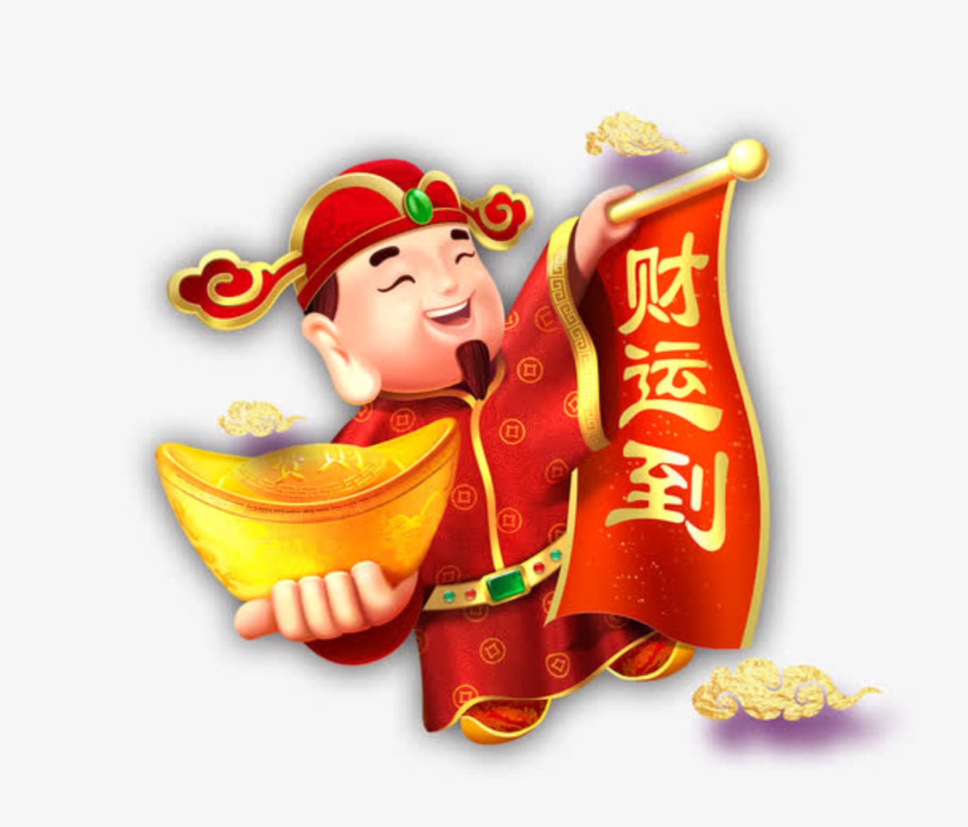 也称“增福财神”,他经常与“福”“禄”“寿”三星及喜神列在一起,合起来为“福、禄、寿、财、喜”。他的外形很富态,是一个面白长髭的长者,身穿锦衣系玉带,左手捧着一只金元宝,右手拿着写上“招财进宝”的卷轴,相貌厚重,让人一看就知是富贵之相。相传他是天上的太白金星,属于金神,他在天上的职衔是“都天致富财帛星君”,专管天下的金银财帛,有求必应,最乐于助人;所以,很多求财的人,对他都非常尊敬,有些甚至日夜上香供奉。有正常生意的人士,可以供奉这一位财神。