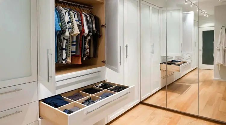 有些房子比较大的朋友,会单独给家中设计一个衣帽间,女主人就可以在这里挑选衣物,试衣搭配。所以衣帽间也需要安装镜子,最好是一面全身镜,方便看到整体穿搭效果。