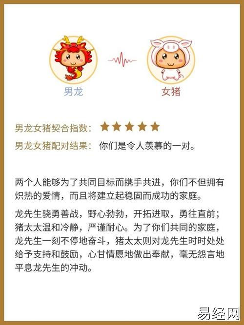 易经网推荐2025最新男属龙女属猪婚姻是否相配 父亲属羊母亲属猪孩子属龙好吗是什么意思?,最新生肖运势,下面是详细内容: 在中国传统文化中,生肖配对被视为婚姻幸福与否的重要依据。龙与猪,这两个...