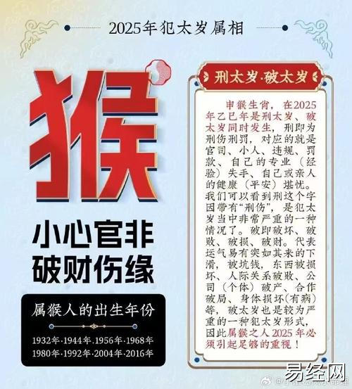 易经网推荐2025最新今天属猴的是否犯太岁 属猴的冲太岁怎么破解是什么意思?,最新生肖运势,下面是详细内容: 2024年为甲辰龙年,生肖运势起伏不定,尤其是在传统命理学中,“犯太岁”一说备受关注。那么...