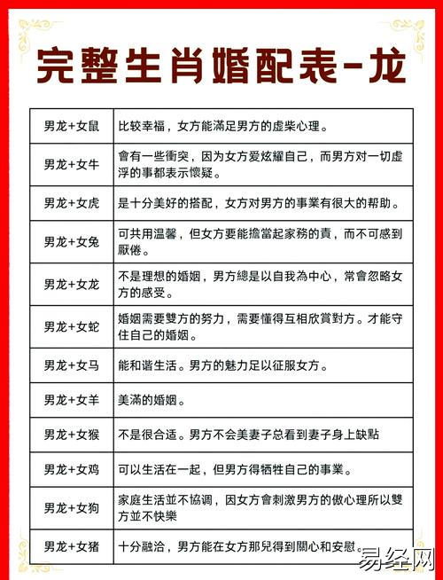 易经网推荐2025最新属龙的婚姻最好属相是什么 属龙人最佳配对属相是什么意思?,最新生肖运势,下面是详细内容: 生肖文化作为中华文明的瑰宝,深深影响着人们的生活,尤其是在婚恋方面。属龙之人,天生...