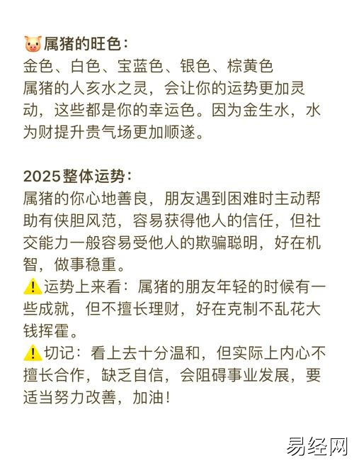 易经网推荐2025最新属猪2025年偏财运免费 属猪2025年财运在哪个方向是什么意思?,最新生肖运势,下面是详细内容: 在五行八字的复杂宇宙中,每个黄道十二宫的财富都有自己独特的轨迹。对于猪朋友来说...