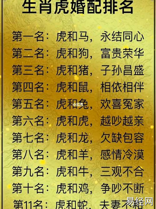 易经网推荐2025最新属虎生肖的最佳配对 属虎的生肖最佳配是什么意思?,最新生肖运势,下面是详细内容: 生肖虎,威猛霸气,出生于寅年的属虎之人,个性豪爽直率,充满自信与魄力。在择偶方面,属虎的人有...