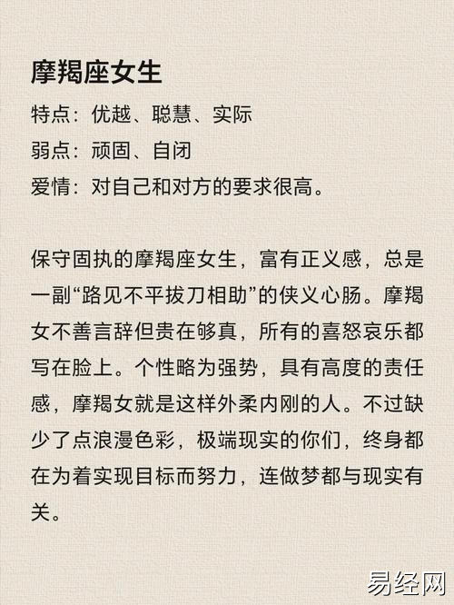 易经网推荐2025最新属马魔蝎女性格特点 女属马人适合佩戴物件是什么意思?,最新生肖运势,下面是详细内容: 属马的自由奔放与魔羯座的严谨内敛,看似水火不容,当它们融汇于一位女性身上,便诞生了一...