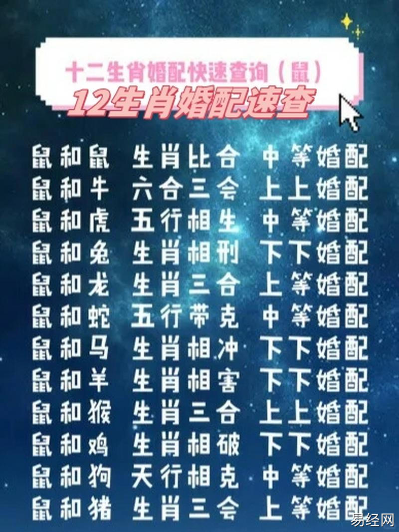 易经网推荐2025最新属鼠的和属啥的婚姻相合 属马和属鼠越冲越旺吗是什么意思?,最新生肖运势,下面是详细内容: 在中国传统的生肖文化中,属鼠的婚姻配对常常是人们关注的焦点。每个生肖都有其独特的...