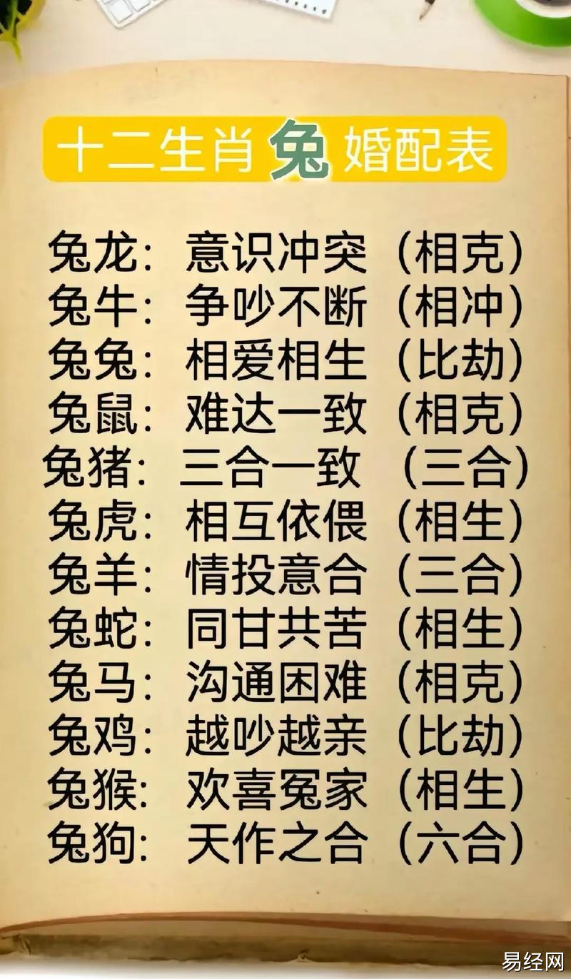 易经网推荐2025最新属兔找什么属相配婚姻最好 属兔的拜什么属相的干妈最好是什么意思?,最新生肖运势,下面是详细内容: 考虑因素: 五行相生相合:兔属木,应与五行水相生(鼠、猪)或木相合(兔)。 六合...