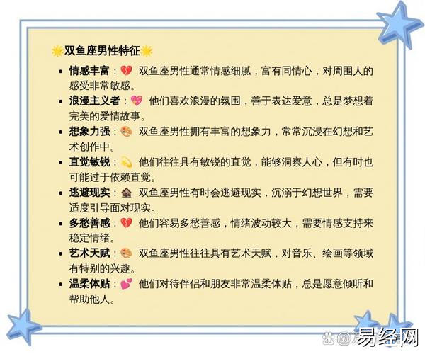 易经网推荐2025最新被属狗的双鱼男欺骗感情 双鱼男的狡猾是什么意思?,最新生肖运势,下面是详细内容: 属狗的双鱼男,结合了生肖狗的忠诚与双鱼座的浪漫,常给人以深情可靠的印象。当这种表象与实际...