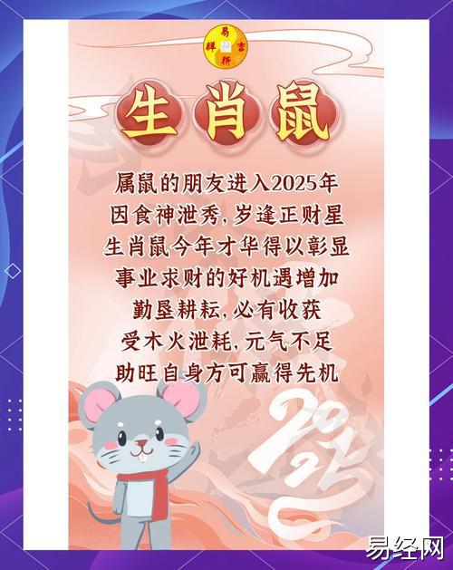 易经网推荐2025最新属鼠2025年完整运势 属鼠2025年运势图是什么意思?,最新生肖运势,下面是详细内容: 对于属鼠的朋友们来说,2025年是充满机遇与挑战的一年。作为中国生肖中最具灵动性的代表,鼠年...