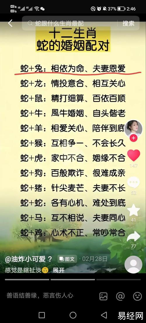 易经网推荐2025最新属蛇的跟属兔的婚姻 属兔和属蛇的大忌是什么意思?,最新生肖运势,下面是详细内容: 属相婚配自古以来是中国传统文化的重要组成部分,它蕴含着人们对婚姻和谐、幸福的期盼。蛇与兔,...