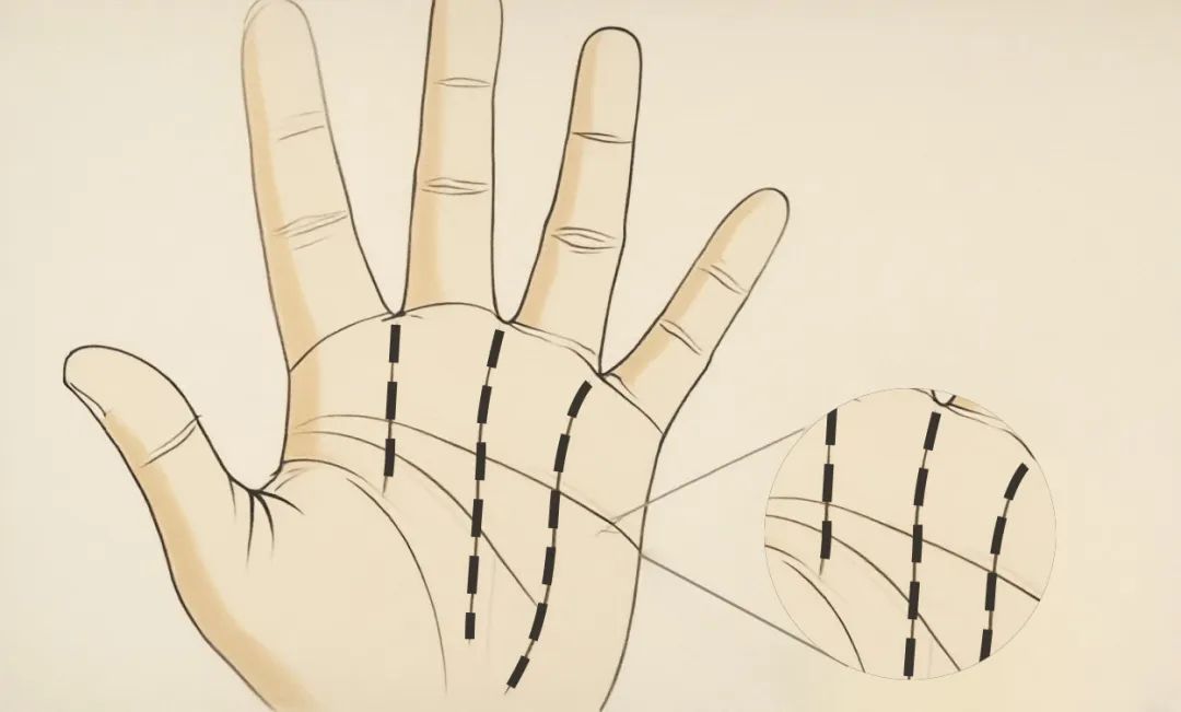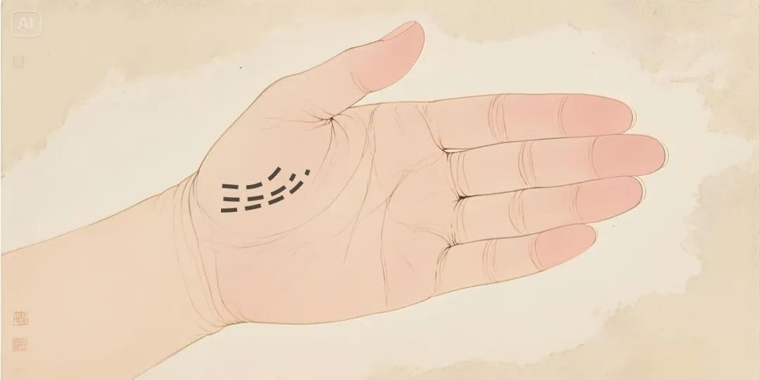 拇指下方与掌心交汇处,有两条形似小鱼的平行纹。