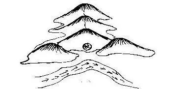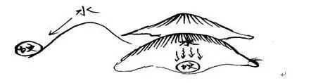 坟后太高没有挡首,水直射而下,这叫遇到淋头水,儿孙皆腿。此种情况基本上都是在山地出现。如图: