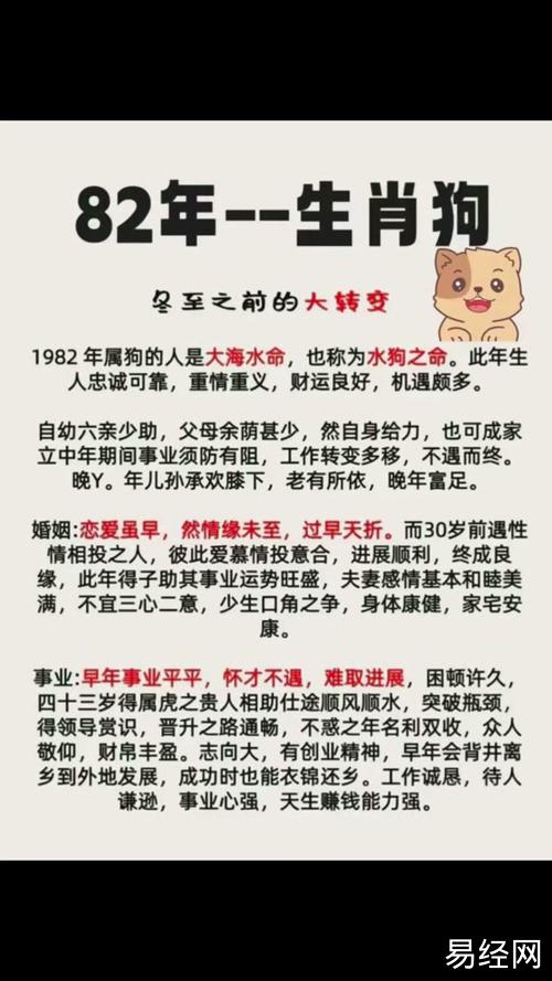 易经网推荐2025最新1982年狗年属狗运势 1982年属狗运程是什么意思?,最新生肖运势,下面是详细内容: 整体运势:吉星拱照,运势亨通 1982年出生的属狗人,在壬寅虎年迎来吉星高照之运。得福星庇佑,福运...