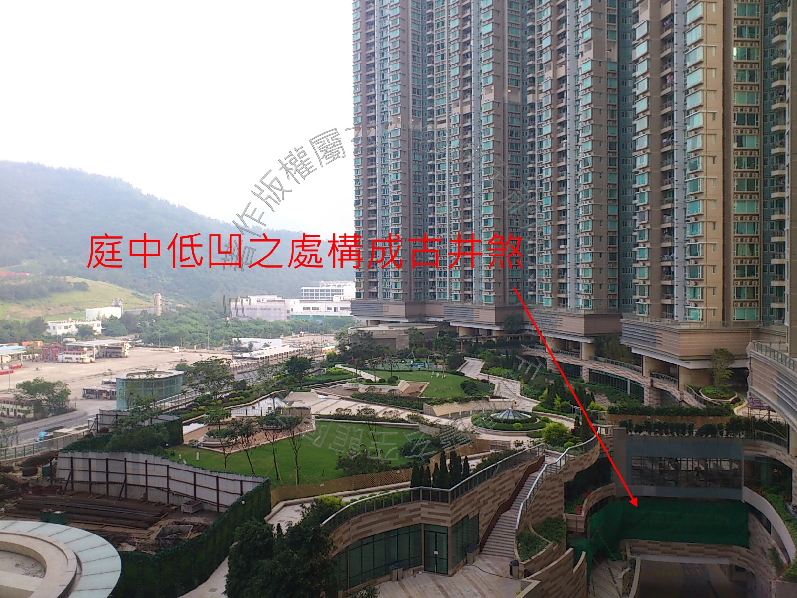 领峯位于日出康城之东面,为将军澳第一期及第二/三期堆填区之间的填海区,山峲近收东北至东方之平洋山,远收西北方之飞鹅山,水势收西南至西方之将军澳。 下元八运以东北靠山,西南见水为佳,此屋苑零正山水算相配,遗撼的是整体岿头受堆填区之垃圾严重污染,玄武靠山矮小力度亦不足。 从财运断,财虽可得,但进财过程较为艰辛。 废物车每天途经屋苑至东南巽方之大赤沙堆填区,发出的臭恶味构成风水上的味煞; 日出康城内的建筑密度高,呆风效应成气煞; 一连串的动土工程成声煞与气煞,此等皆严重影响住客的健康运,巽为女卦,尤以女性为甚。