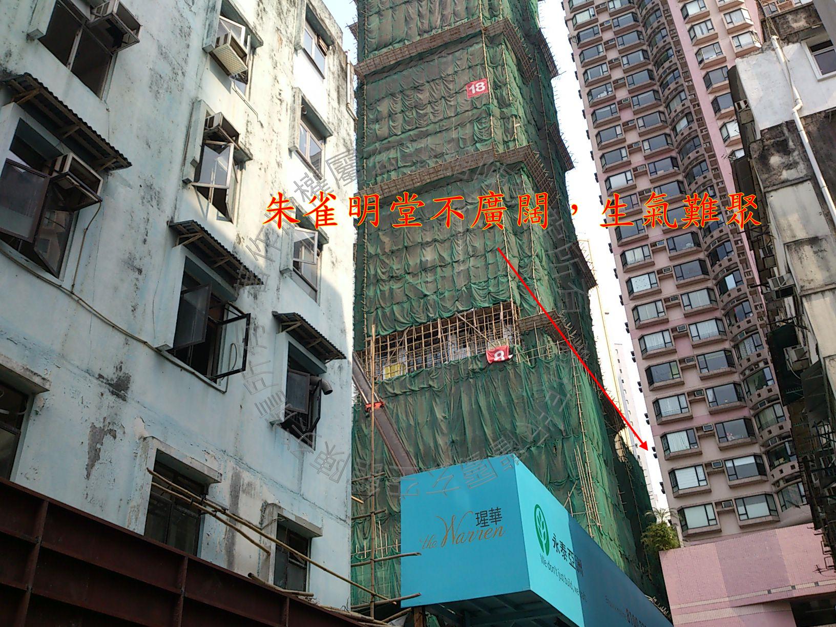 大厦设计优美,酒店式服务尊尚,高层单位户户远眺维多利亚公园及维多利亚港,景色迷人。 惟大厦入口位于西南坤方之重士街,街道狭窄至车辆气路不顺,朱雀明堂不广阔,生气难聚。 停车埸入口位于玄武后方之华伦街,此方受京街路冲又见公厕,瘴污之气影响大厦住客之健康运。 邻近四周多为老化了的唐楼,墙身剥落,呈休囚之象,不为美。